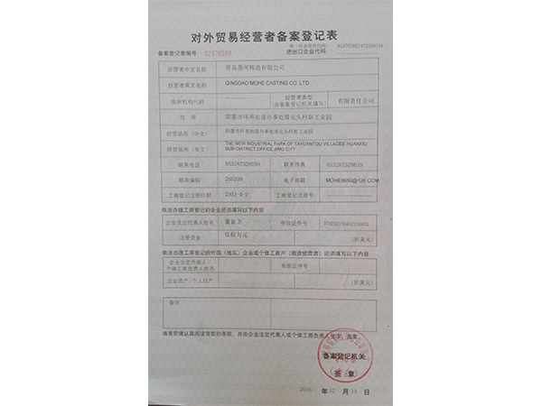 青島墨河鑄造有限公司 聯(lián)系人:董照 電話:13953213469(微信同號) 座機(jī):0532-87566543 郵箱:[email protected] QQ:1678294021 地址:青島即墨市泰山一路南端186號